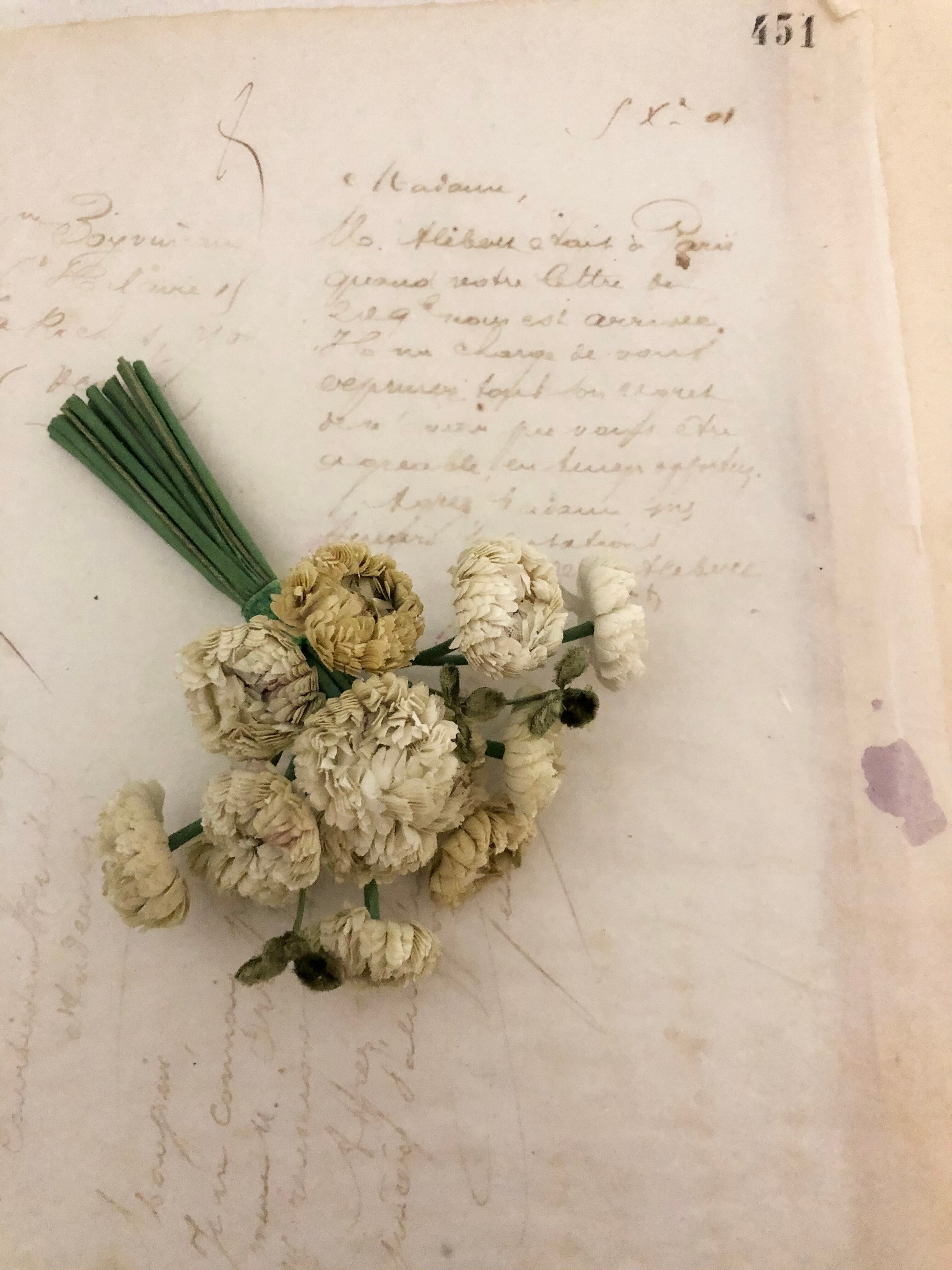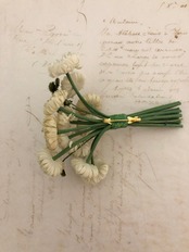 少し朽ちたようなカラーの白詰草をイメージしてつくりました。