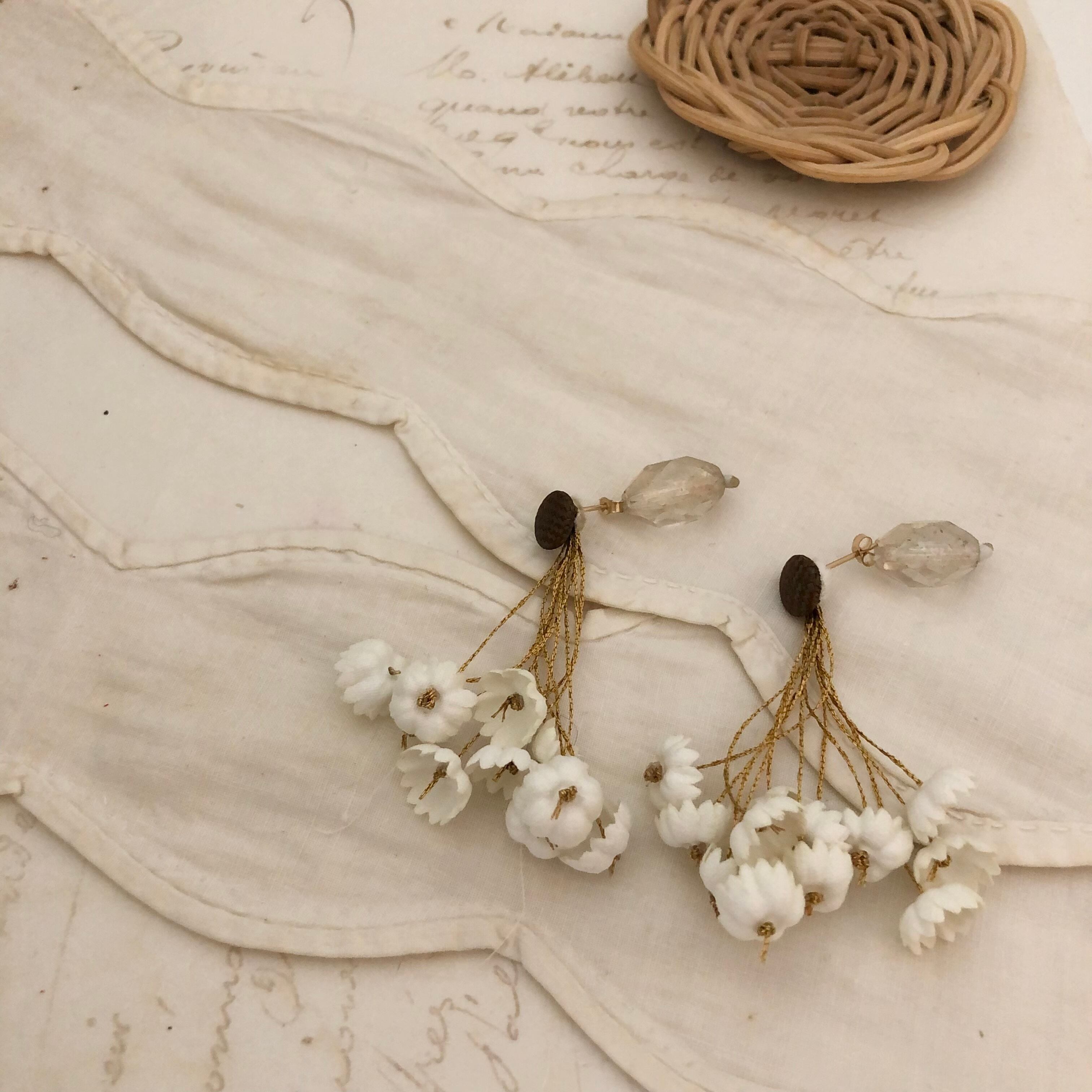 アンティークガラスビーズと布花のピアス