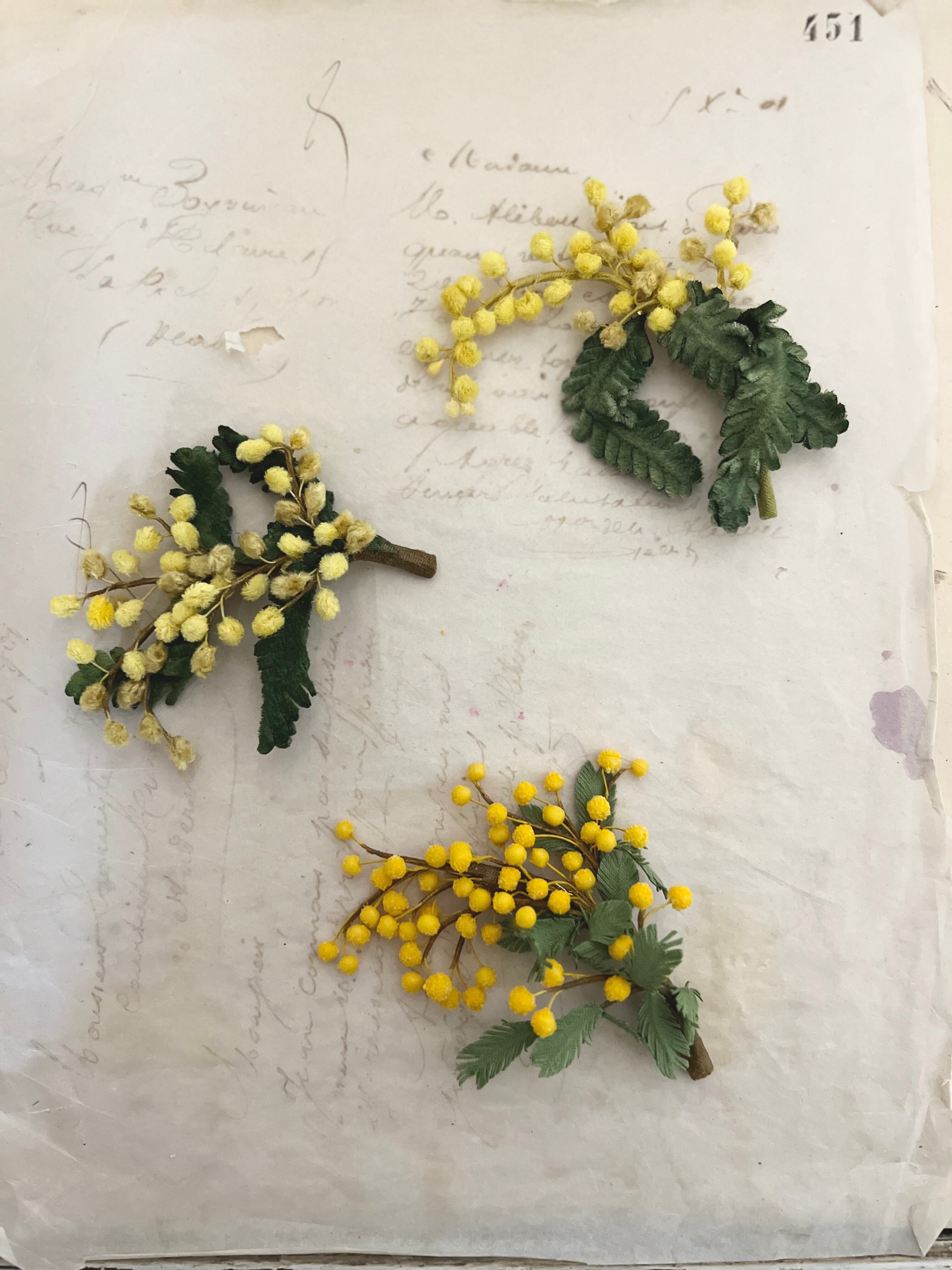 ミモザのコサージュ 素材 モア・ビロード サイズ 8㎝